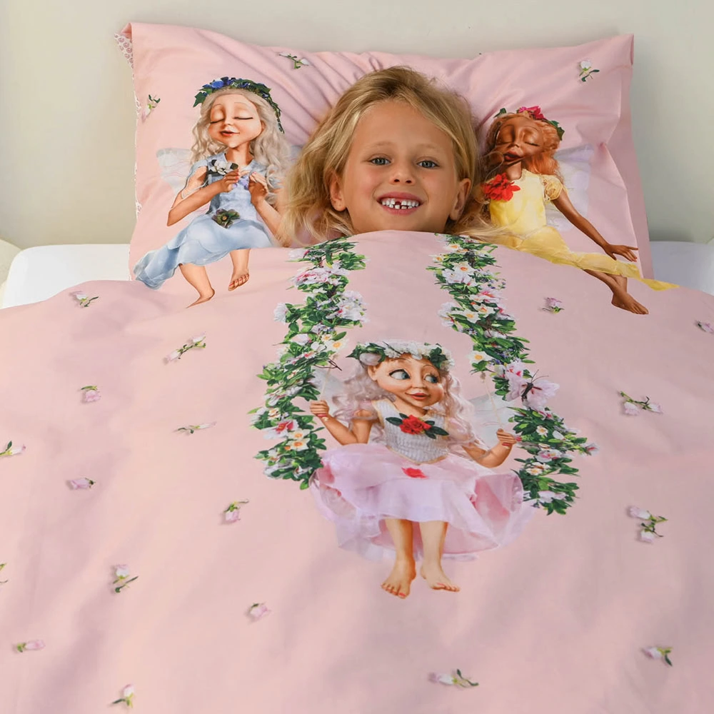 Droom weg in je eigen Droomvlucht! Dit zachtroze dekbedovertrek met speelse bloemetjes brengt de betovering van de Efteling naar je slaapkamer, waar elfjes je meenemen naar een wereld vol magie en fantasie.