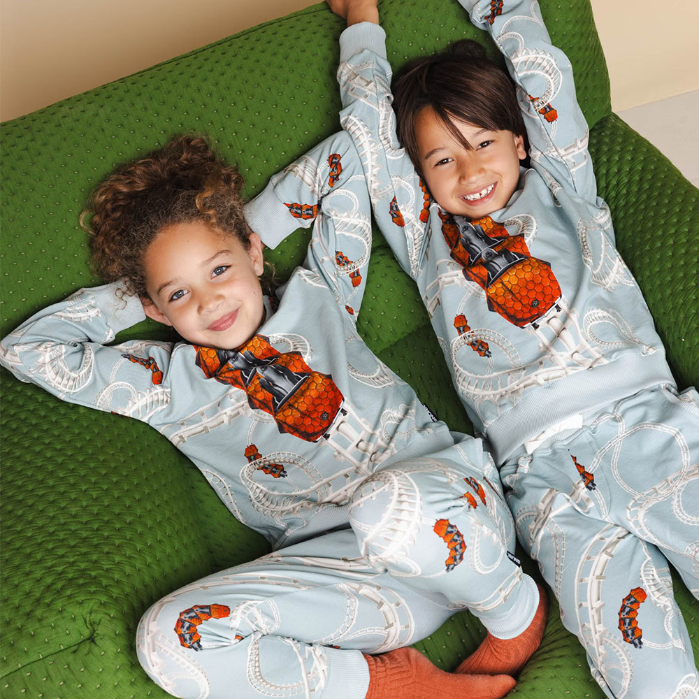 Kids sweater en broek set is gemaakt van 95% biologisch felpa katoen en 5% elastaan.