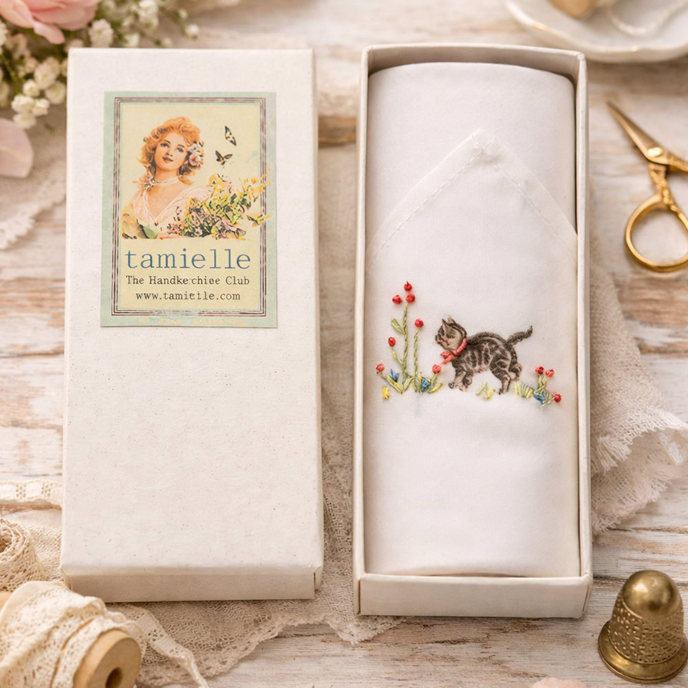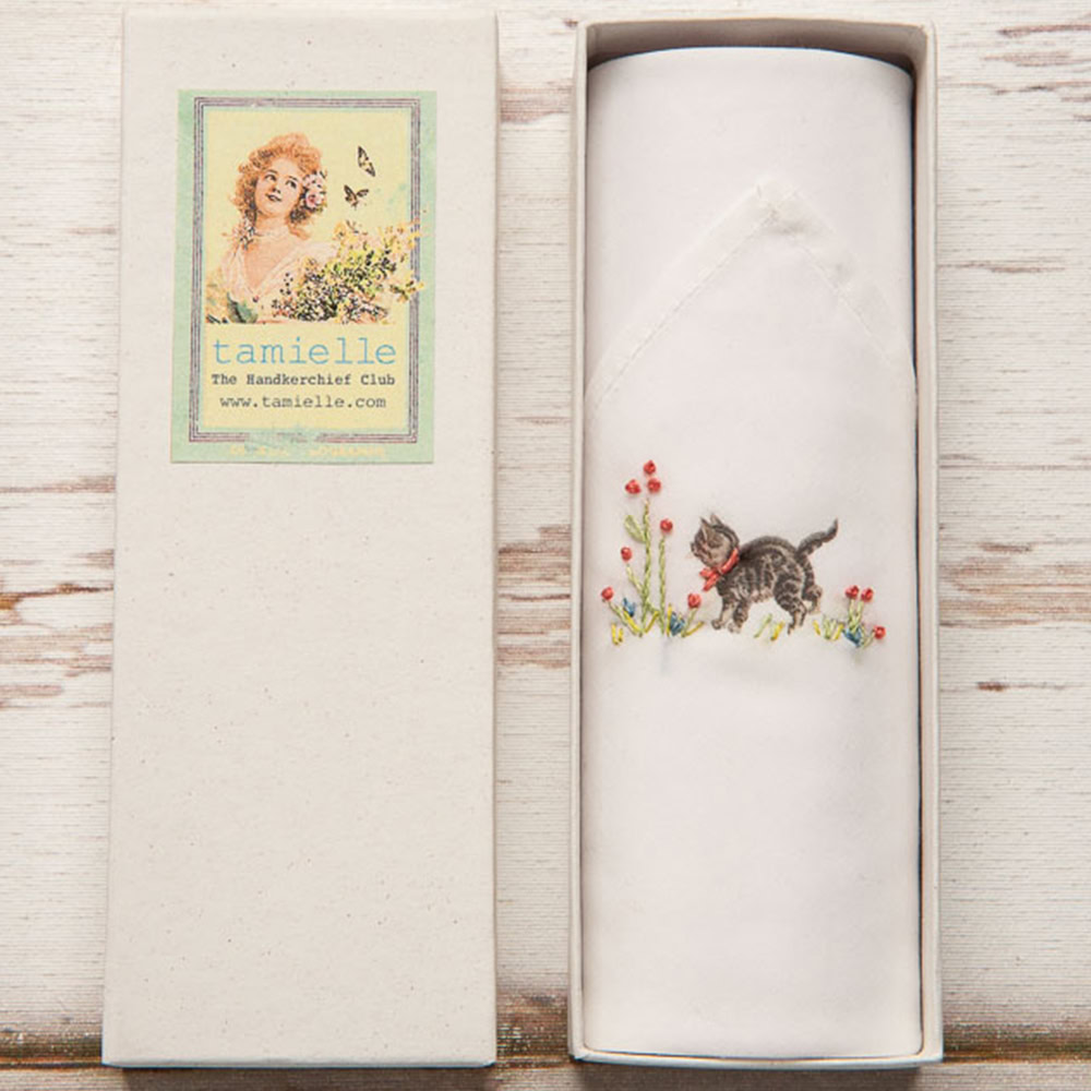 Handgeborduurde dames zakdoek – Cat