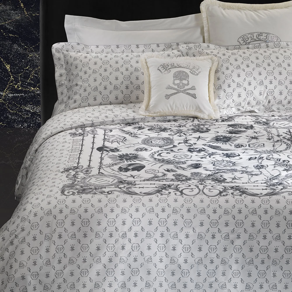 Het Philipp Plein New Baroque “Skull” dekbedovertrek straalt pure luxe uit met zijn elegante barokdessin, verfijnde glans en onmiskenbare high-end uitstraling.