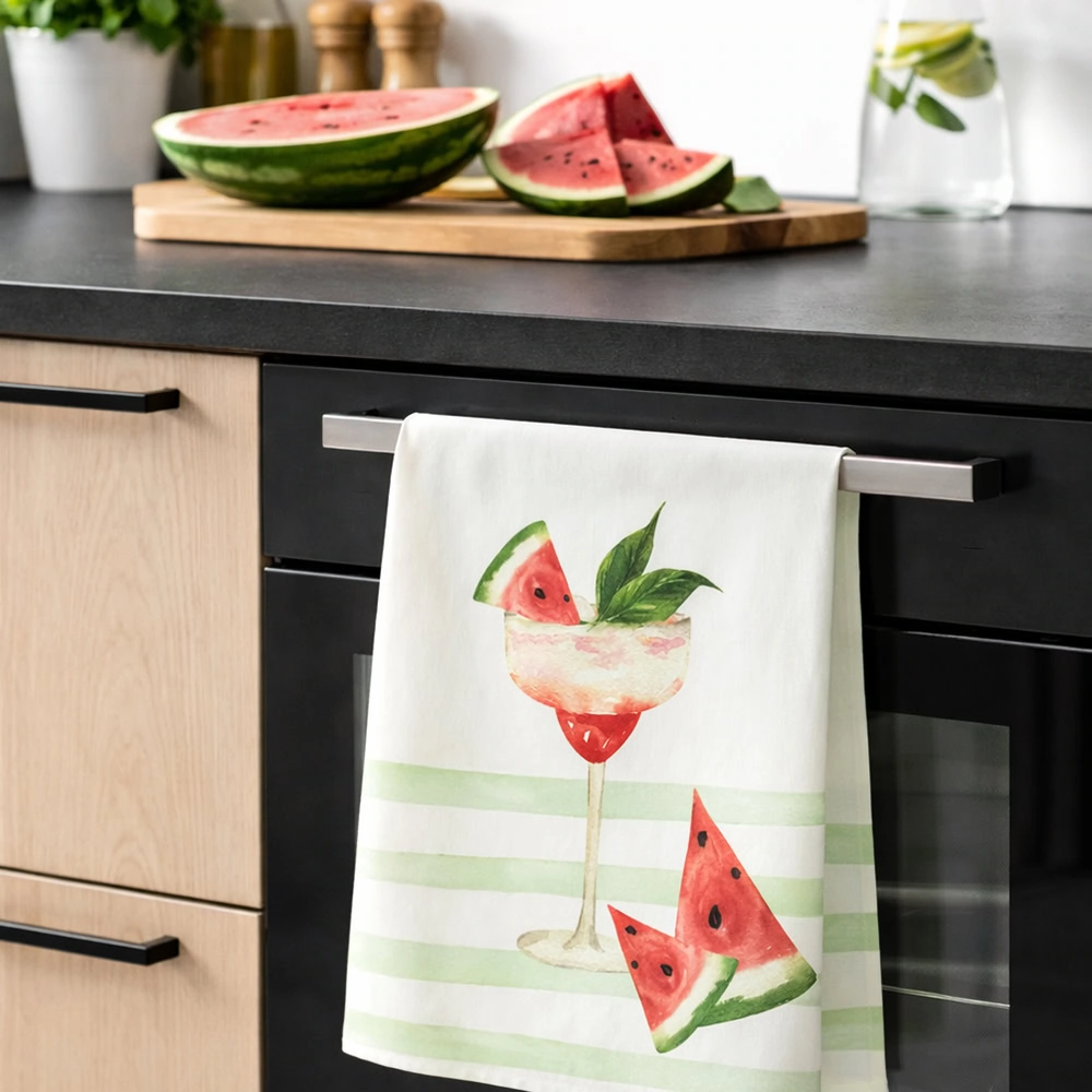 Pichler theedoek – Lumelon is een vrolijke theedoek met afbeelding van een watermeloen cocktail. Theedoek Lumelon is iets voor jou als je dol bent op fruit, cocktails of als je gewoon leuke theedoeken in jouw keuken wilt! De afmeting is 50×70, fijn ruim om het servies en glazen mee af te drogen.