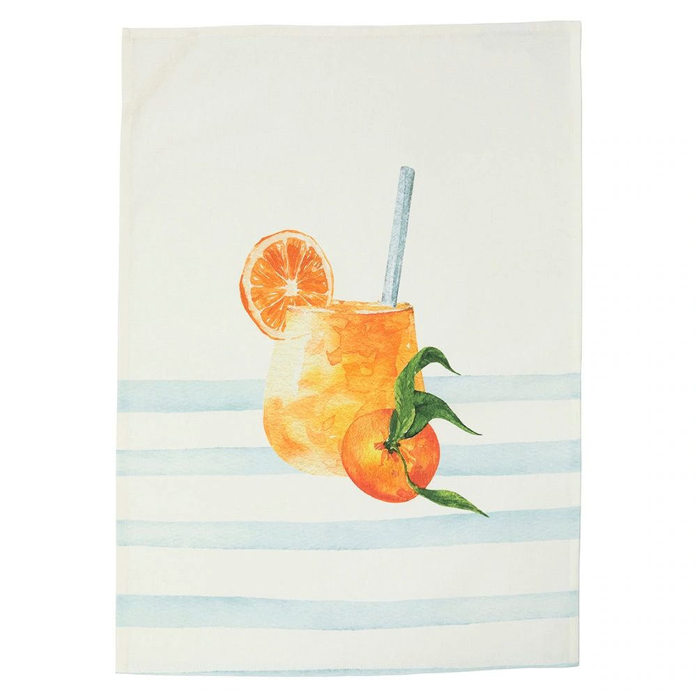 Vrolijke theedoek van sinaasappel limonade print ‘Orangina’ in de praktische maat 50×70. Vervaardigd uit 100% katoen, perfect om borden en bestek mee af te drogen. Een prachtig en nuttig geschenk voor jezelf of om cadeau te geven.