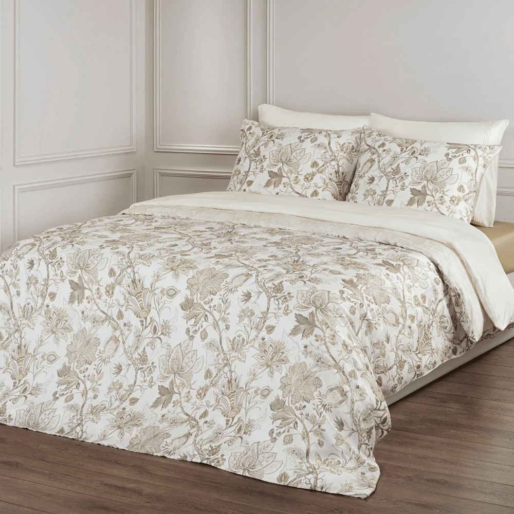 De achterzijde heeft de bloemenprint in een lichtere kleur, op deze manier is het dekbedovertrek omkeerbaar. Dit geeft een extra luxe effect wanneer je het aan de bovenzijde omslaat.