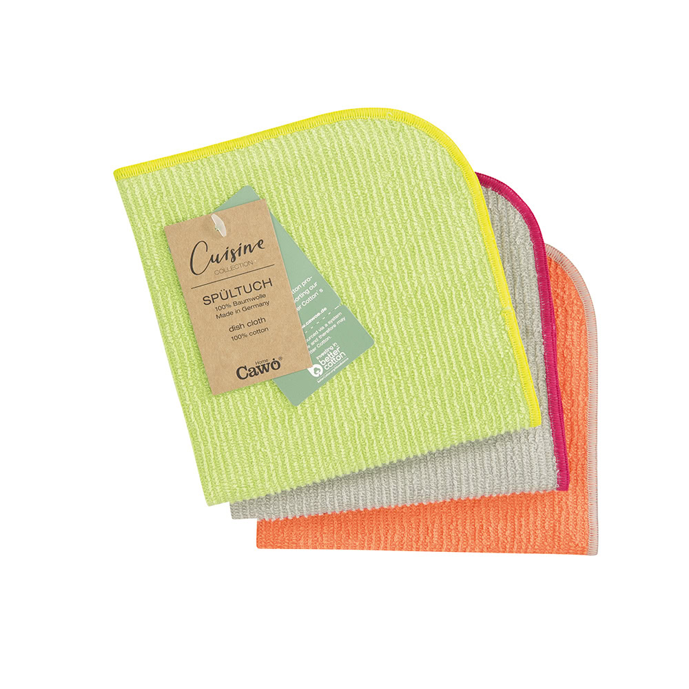 Set van drie stuks vaatdoeken in frisse kleuren. Gemaakt van dikke katoen in de afmeting 30×30 cm. De Cawö vaatdoeken zijn van hoogwaardige kwaliteit en gaan lang mee.